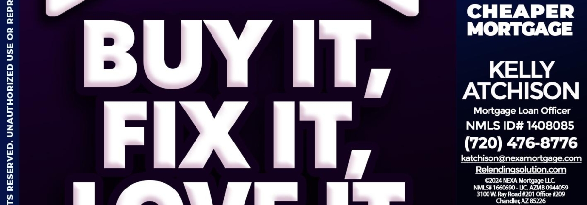 BUY IT FIX IT LOVE IT - Kelly Atchison -Mortgage Loan OfficerHi, my name is Kelly Atchison. I’m a Loan Officer with NEXA Mortgage LLC., offering personalized mortgage solutions, fast customized quotes, great rates and service with integrity.