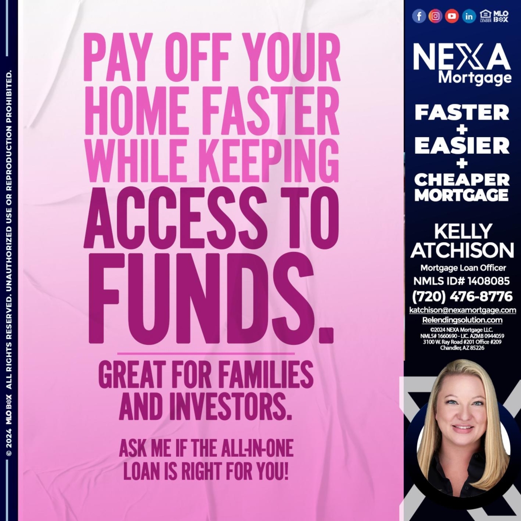 Hi, my name is Kelly Atchison. I’m a Loan Officer with NEXA Mortgage LLC., offering personalized mortgage solutions, fast customized quotes, great rates and service with integrity.